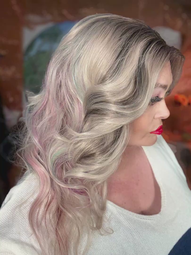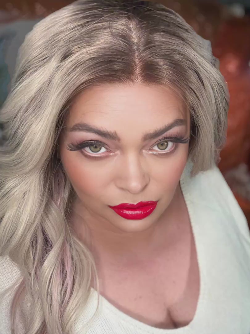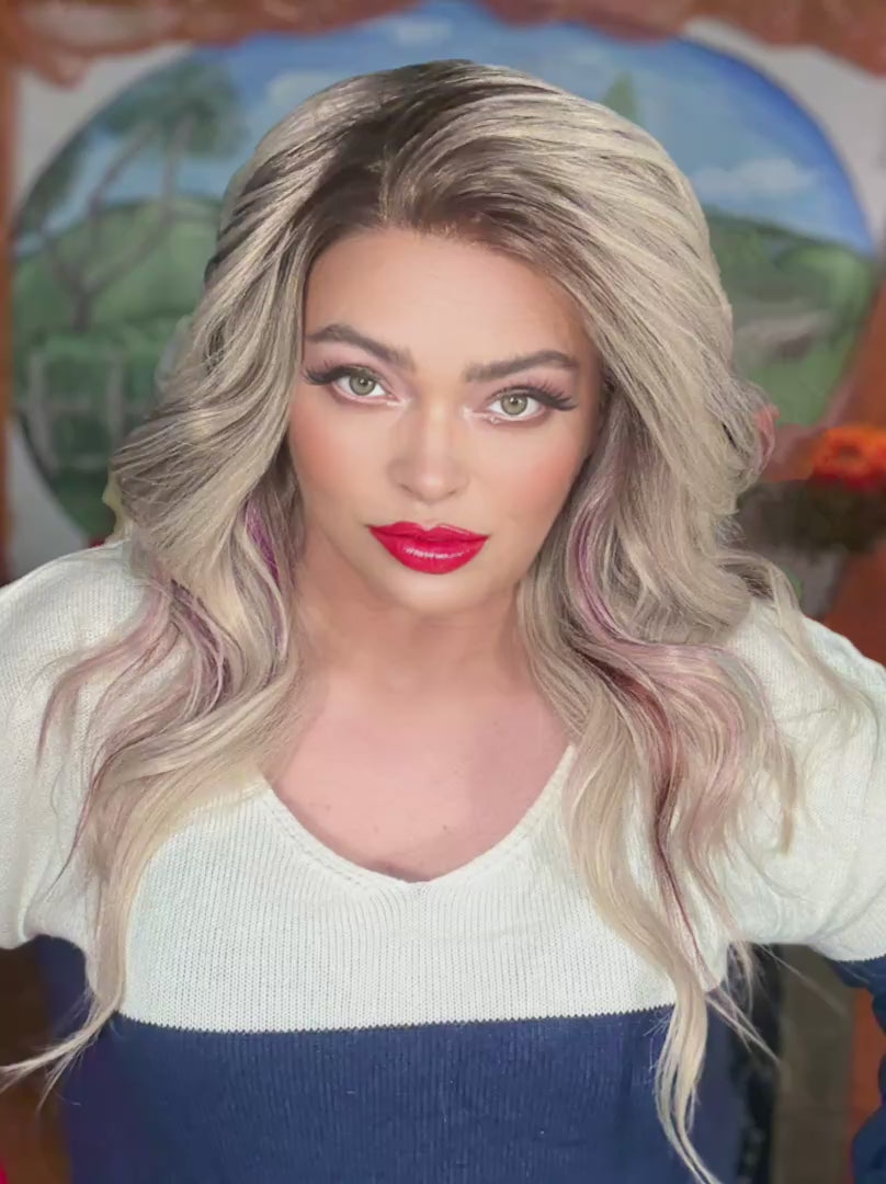DOLLY, featuring 13x4 lace front and free part for versatile styling. Made with premium heat resistant, Futura synthetic fiber for lasting quality. With an 20" wolf cut loose curl, this stunning, cool blonde wig is rooted for a natural look. Adjustable straps and standard cap size ensure a comfortable fit. Customized by WBR, your ultimate choice for expertly crafted wigs.