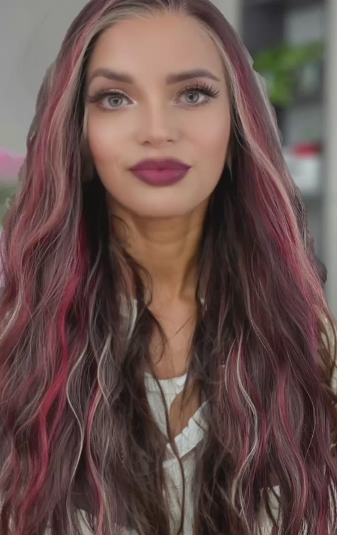 KALINA is a stunning lace front wig with a beach wave style, featuring a beautiful mix of crimson brown and blonde. Made with premium heat resistant synthetic fiber and an adjustable strap for a perfect fit, it also offers a free part and standard cap size for easy wearability. Elevate your look with KALINA's carkira features.