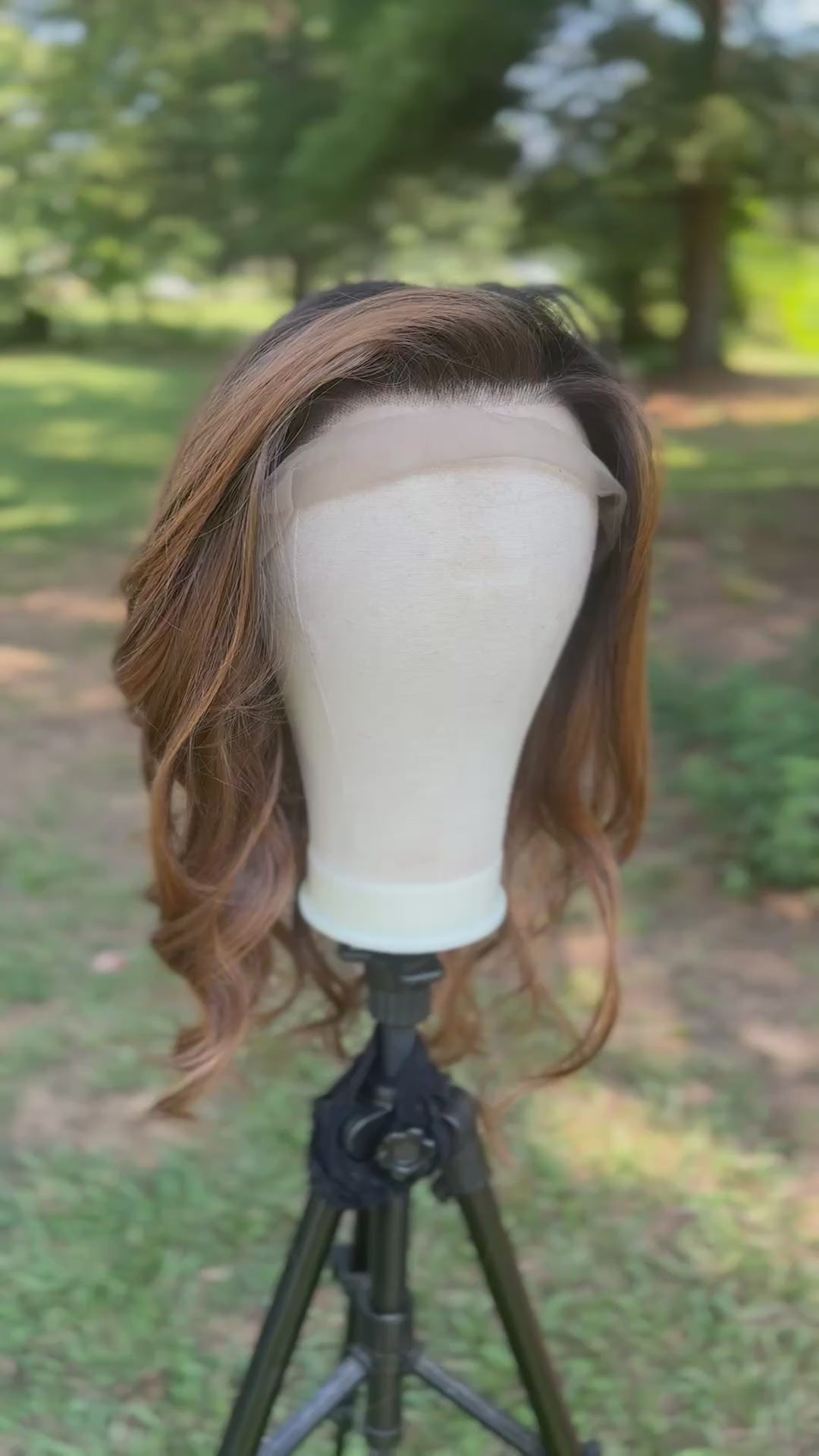 Experience the RAINE 13x4 Luxe Lace Front wig, crafted with premium heat-resistant Futura synthetic fiber for durability and styling versatility. Featuring a 24" loose curl with light layering, this wig offers a natural free part and stunning copper color with darker rooting for depth. Designed with adjustable straps and a standard cap size, it ensures a secure, comfortable fit. Expertly customized by WBR, RAINE combines style and quality for a flawless, sophisticated look.
