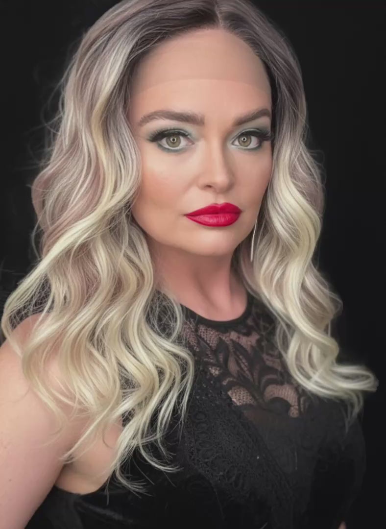 TESS is a synthetic fiber lace front T part with premium heat resistance. This stunning 18 inch loose curl boasts layers of blonde and purple gray rooting balayage. With adjustable straps and a standard cap size, it's the perfect addition to your collection. Directly shipped to you from the supplier.